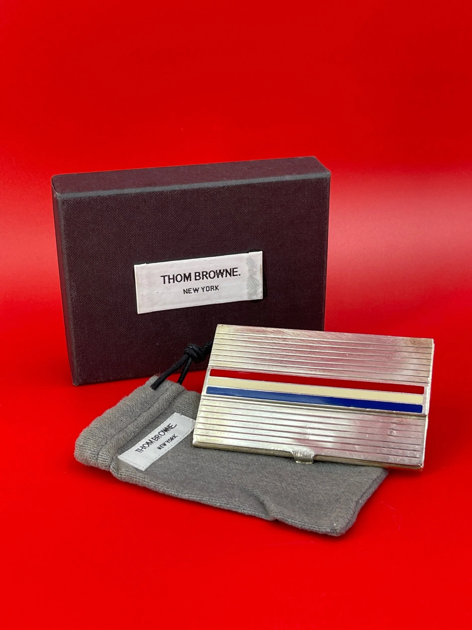 Made in Italy, sterling silver with red, white & blue enameled stripes to front and back, hinged, presented in the original box and dust bag.