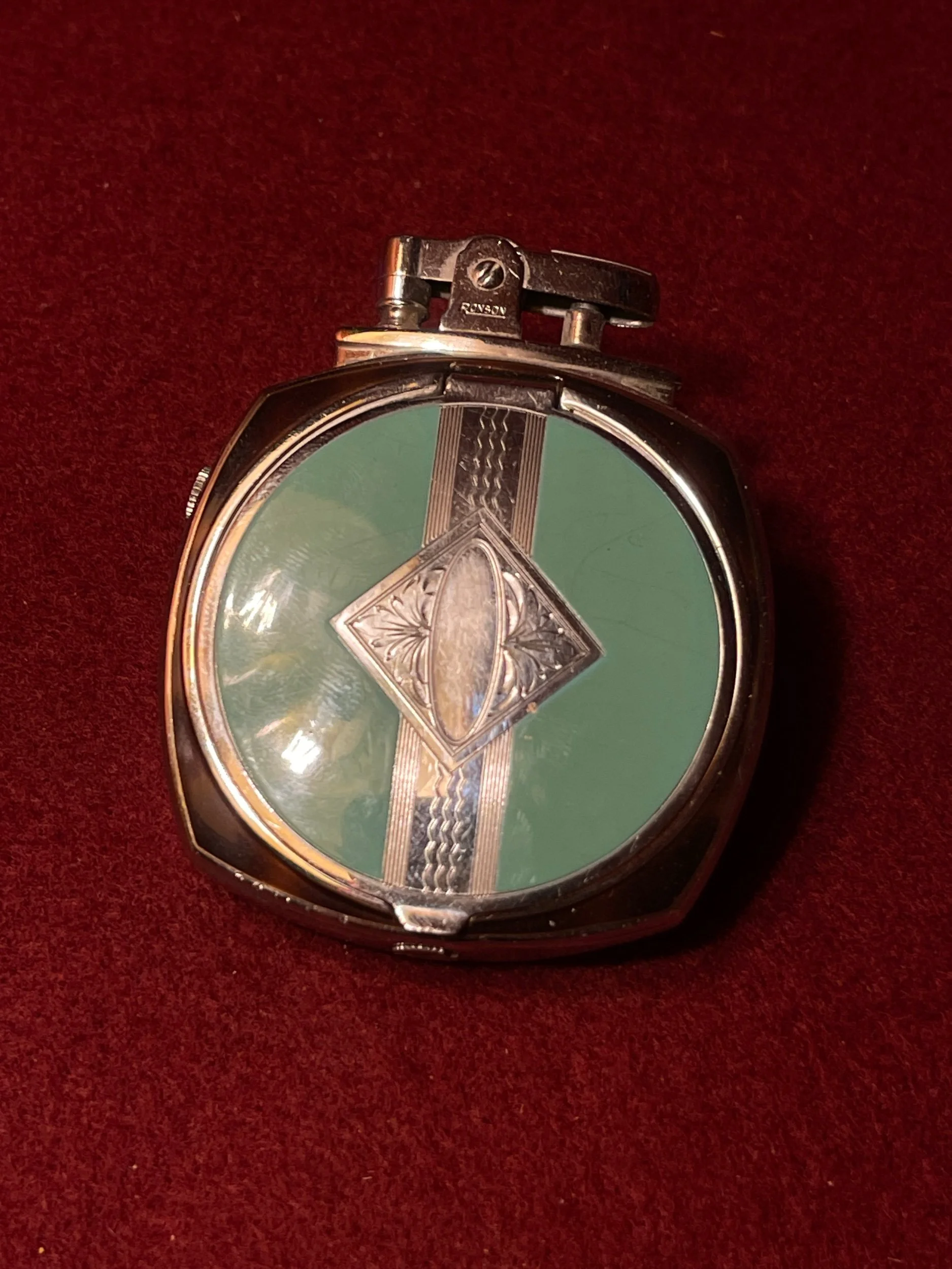 Tobaccania › RARE! Ronson Compact Mirror Pocket Lighter Image 1 of 3 Image 2 of 3 Image 3 of 3 RARE! Ronson Compact Mirror Pocket Lighter $875.00 A very rare piece. Lighter is fully functional. Original makeup sponge still inside. A definite collectors item! Add To Cart Added! A very rare piece. Lighter is fully functional. Original makeup sponge still inside. A definite collectors item!