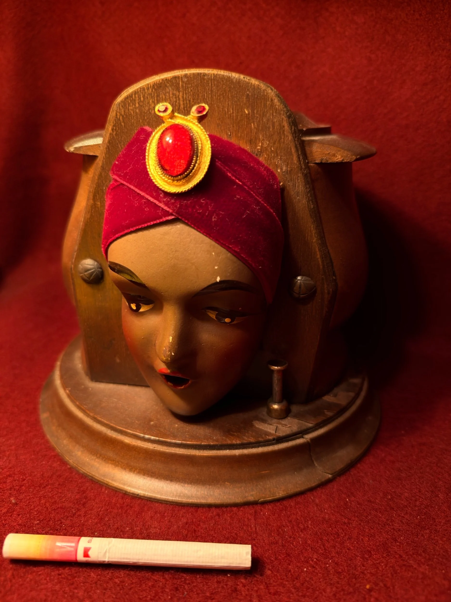 1920s Gypsy Cigarette dispenser. With original gem broach and fully functional press button release. An incredible collectors piece.