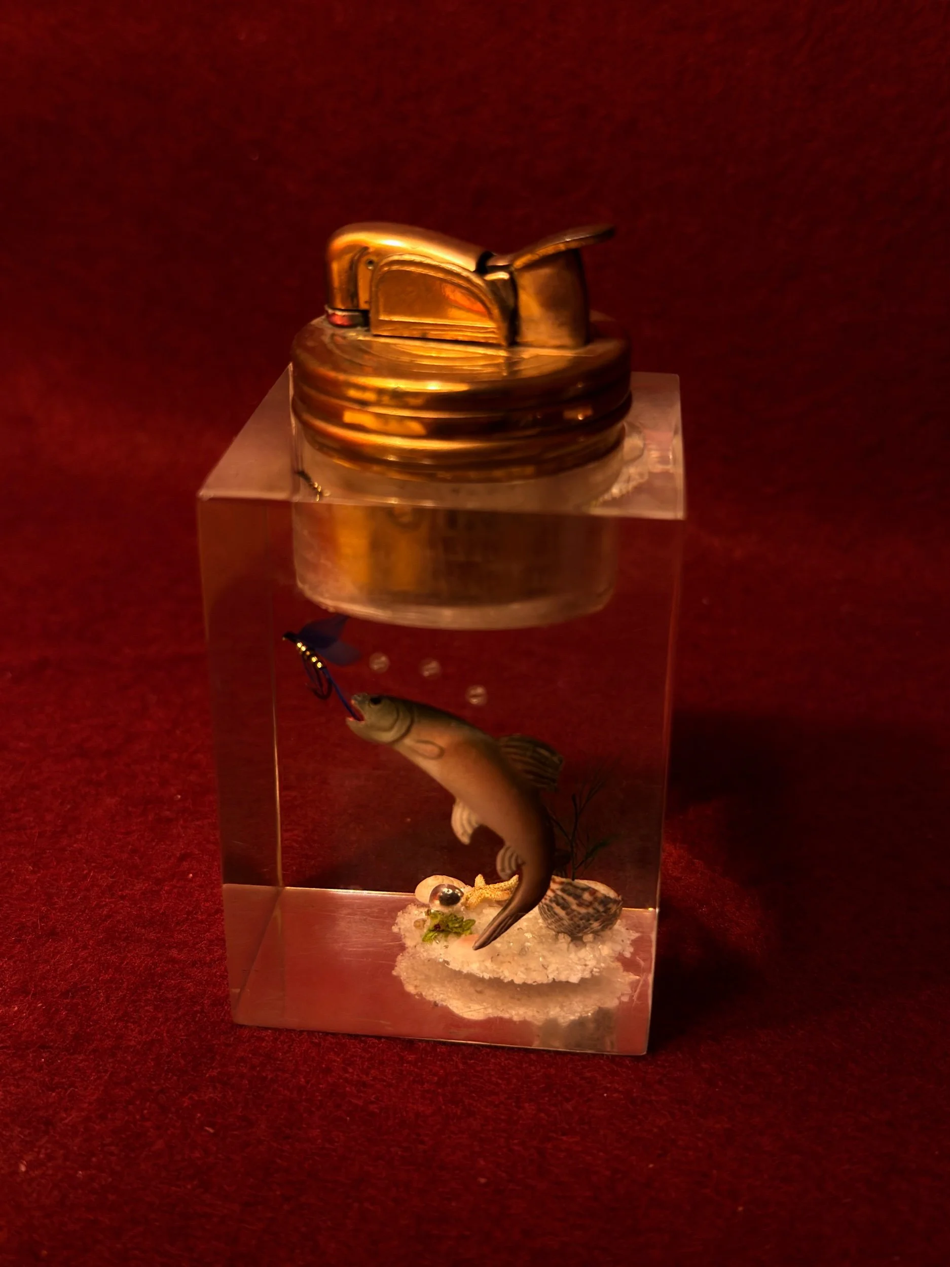 Tobaccania › Evans Lucite Fishing Lure Table Lighter Image 1 of 1 Evans Lucite Fishing Lure Table Lighter $250.00 ALL LIGHTERS ARE FULLY RESTORED. LIGHTERS WILL SHIP EMPTY. PLEASE FILL WITH LIGHTER FLUID. ZIPPO OR RONSONAL. Add To Cart Added! ALL LIGHTERS ARE FULLY RESTORED. LIGHTERS WILL SHIP EMPTY. PLEASE FILL WITH LIGHTER FLUID. ZIPPO OR RONSONAL.
