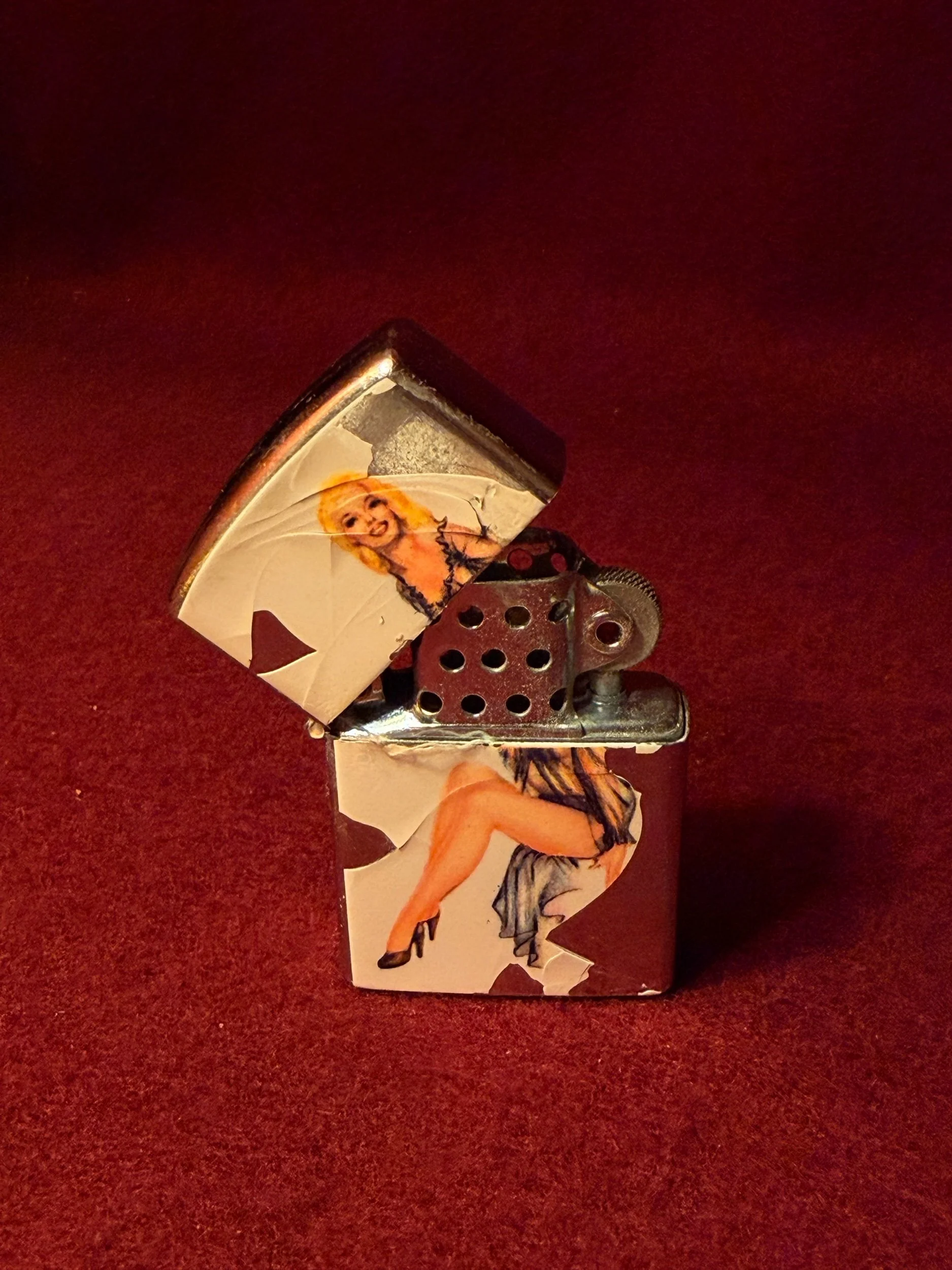 Tobaccania › Collectors Enamel Pin Up Lighter Image 1 of 2 Image 2 of 2 Collectors Enamel Pin Up Lighter $125.00 Highly collectible 1960s Enamel Pin Up Lighter. Fully Restored! Add To Cart Added! Highly collectible 1960s Enamel Pin Up Lighter. Fully Restored!