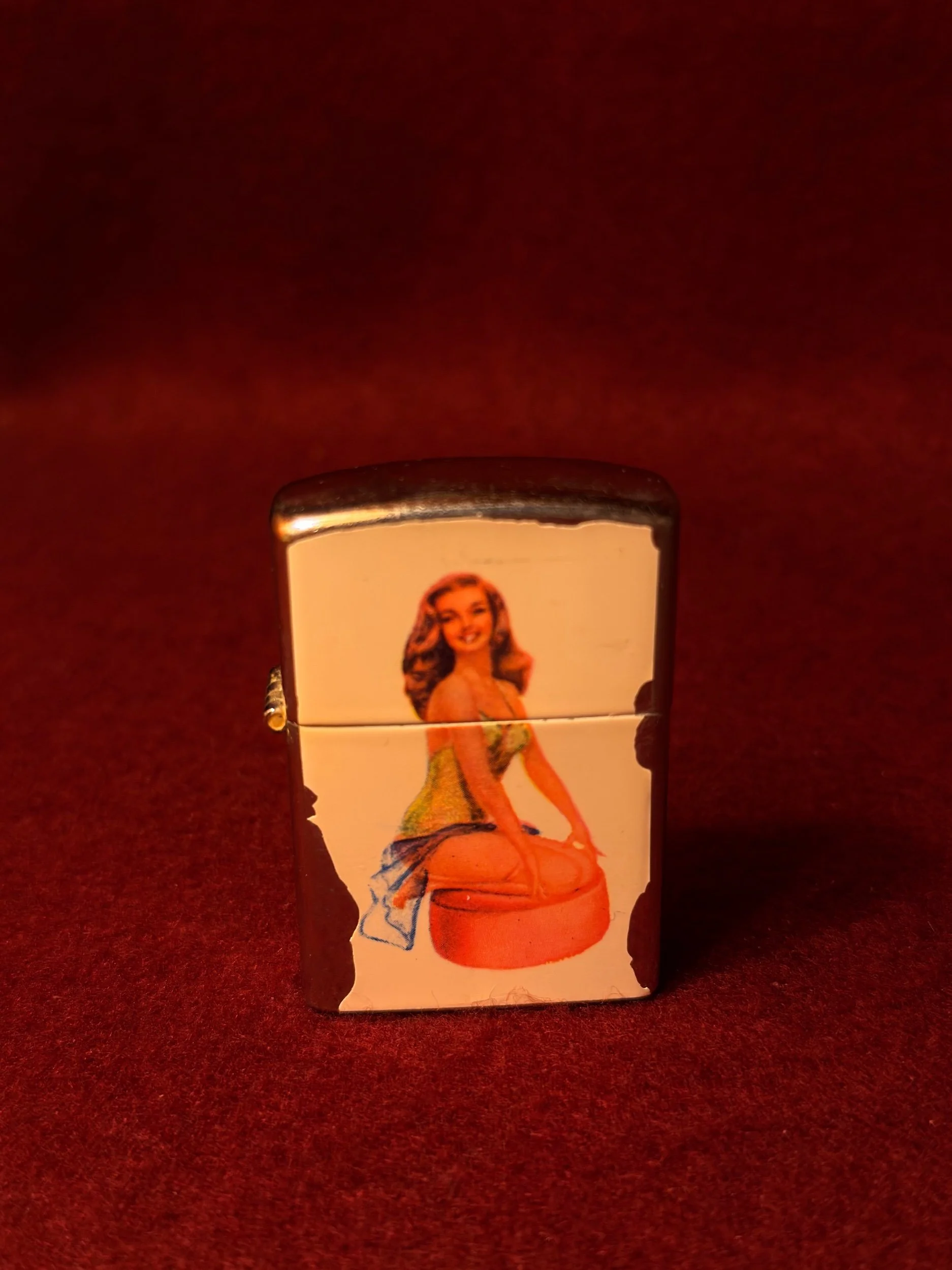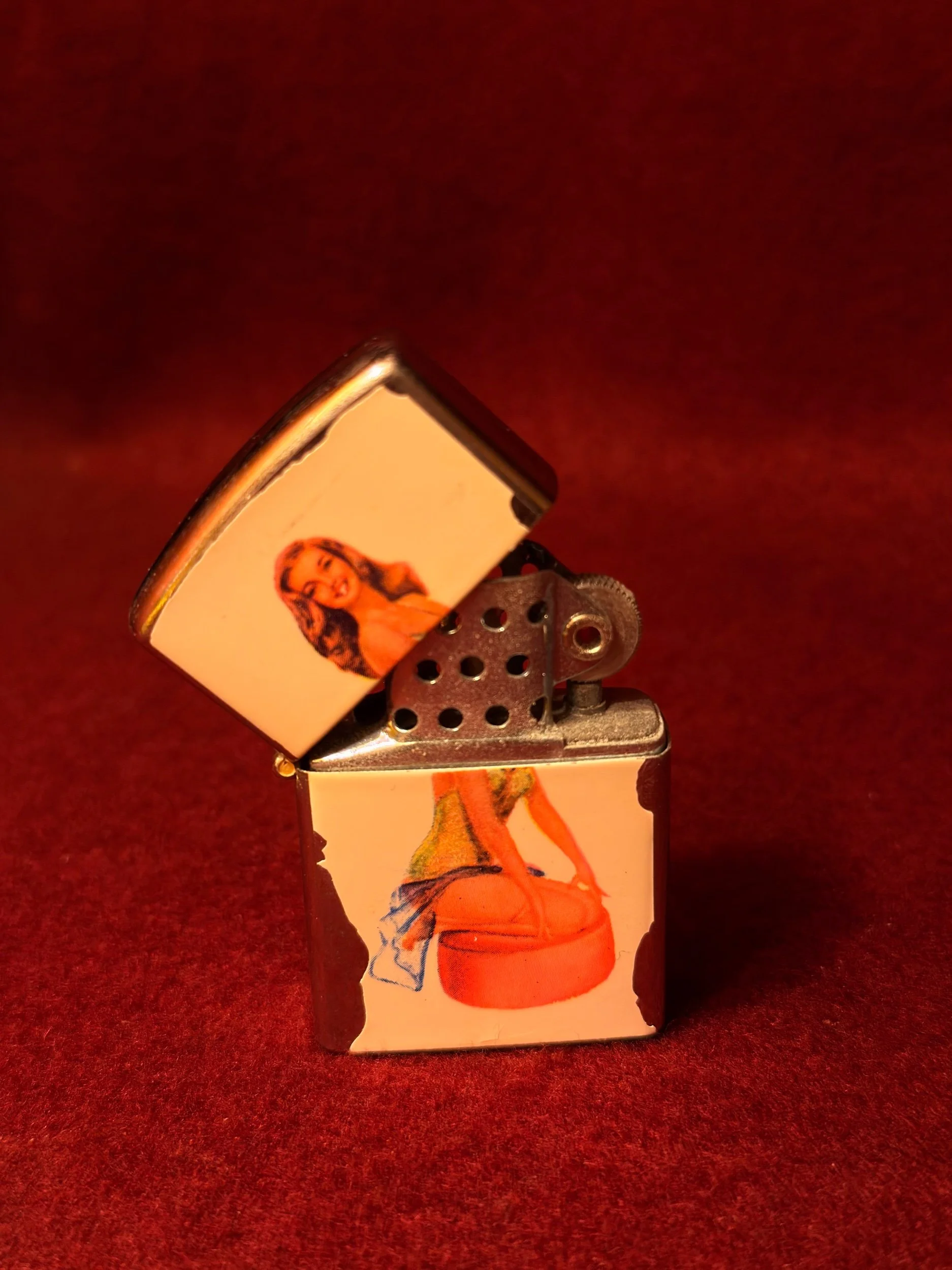 Tobaccania › Collectors Enamel Pinup lighter Image 1 of 2 Image 2 of 2 Collectors Enamel Pinup lighter $150.00 Highly collectible 1960s Enamel Pin Up Lighter. Fully Restored! Add To Cart Added! Highly collectible 1960s Enamel Pin Up Lighter. Fully Restored!