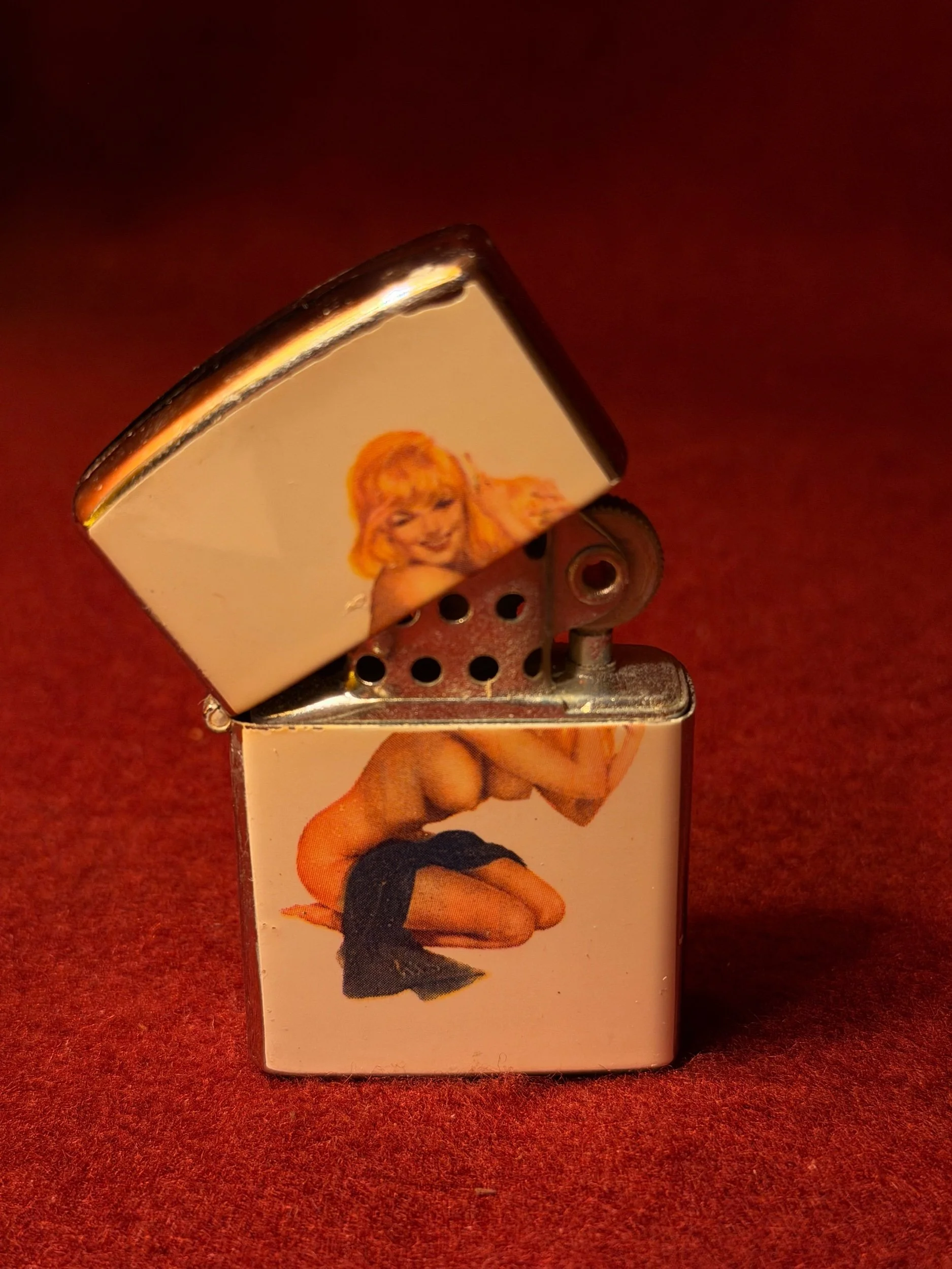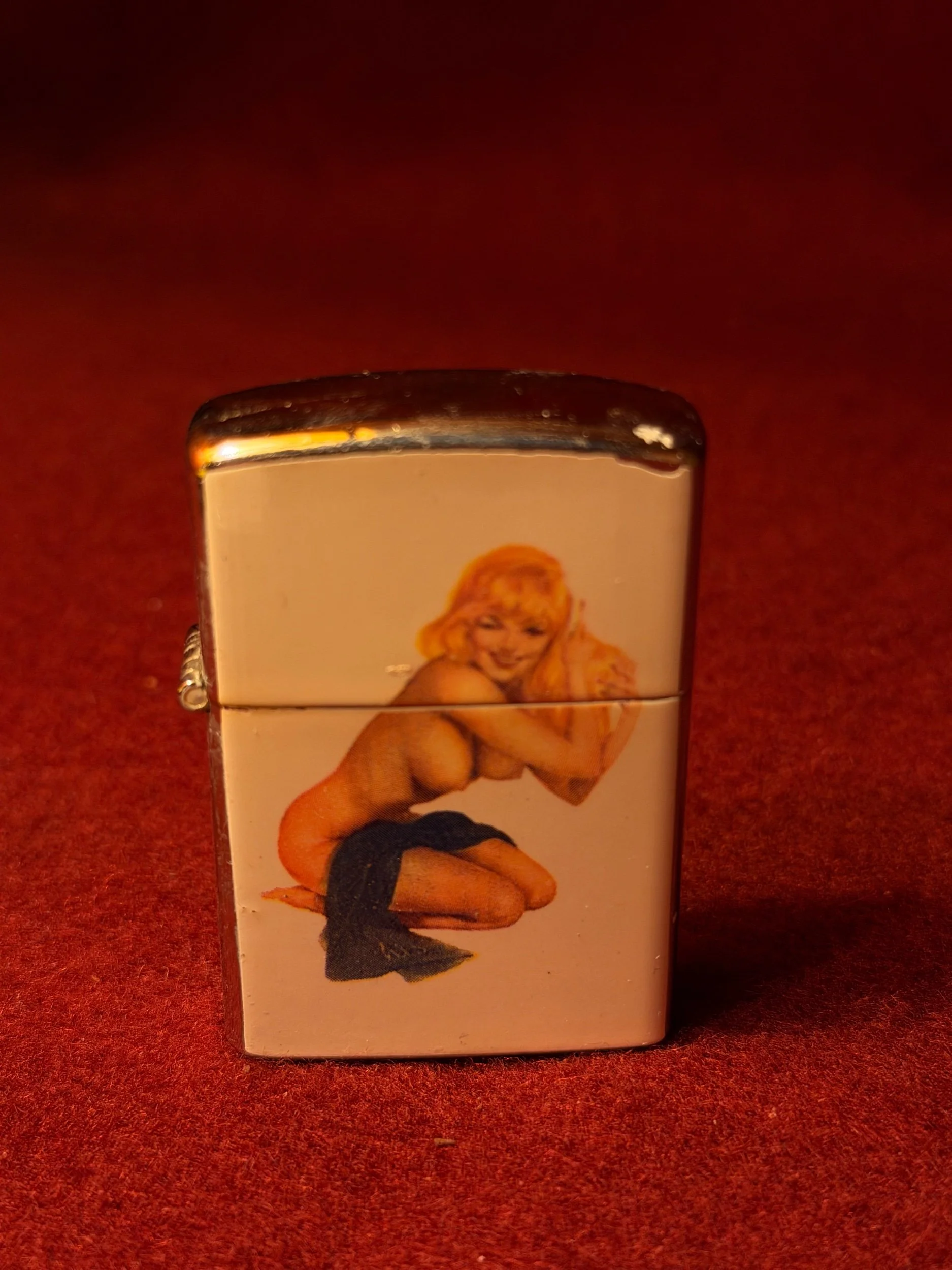 Tobaccania › Collectors Enamel Pin Up lighter Image 1 of 2 Image 2 of 2 Collectors Enamel Pin Up lighter $200.00 Highly collectible 1960s Enamel Pin Up Lighter. Fully Restored! Add To Cart Added! Highly collectible 1960s Enamel Pin Up Lighter. Fully Restored!