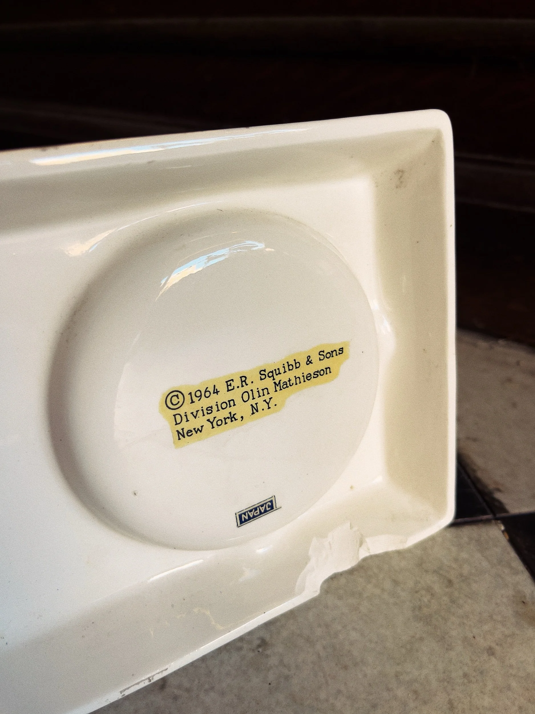 Tobaccania › 1964 NYC Squibb & Sons porcelain ashtray Image 1 of 3 Image 2 of 3 Image 3 of 3 1964 NYC Squibb & Sons porcelain ashtray $399.99 Add To Cart Added!